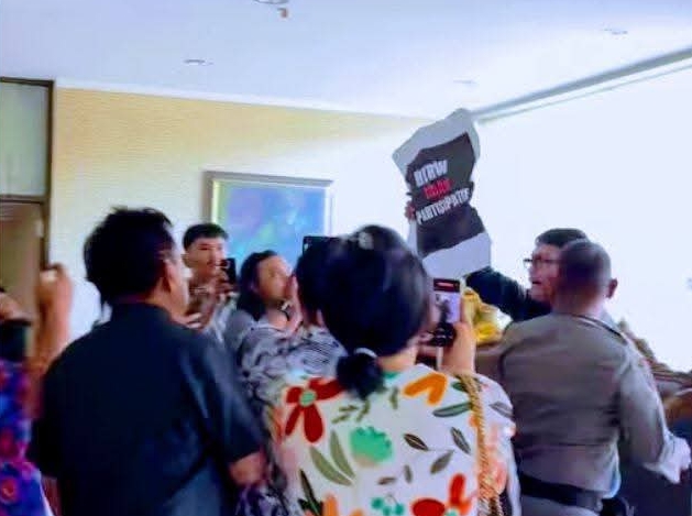 Situasi sempat memanas ketika massa mencoba mendorong masuk ke ruang rapat untuk menyuarakan aspirasi secara langsung. Aparat Satuan Polisi Pamong Praja melakukan pengamanan ketat dan berhasil mengendalikan situasi tanpa bentrokan fisik.