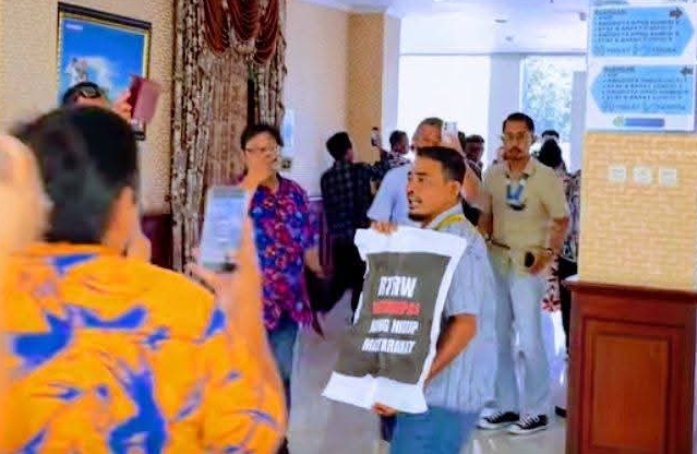 Dengan membentangkan spanduk bertuliskan “Tolak RTRW”, massa melakukan orasi di luar hingga mencoba menyuarakan aspirasi di dalam gedung dewan. Mereka mendesak agar pembahasan RTRW dihentikan sementara sampai ada jaminan keterbukaan dan pelibatan publik secara menyeluruh.